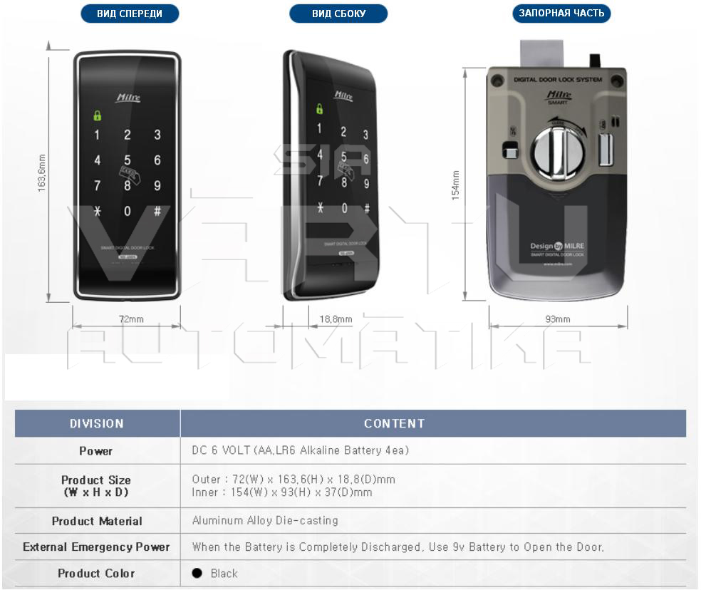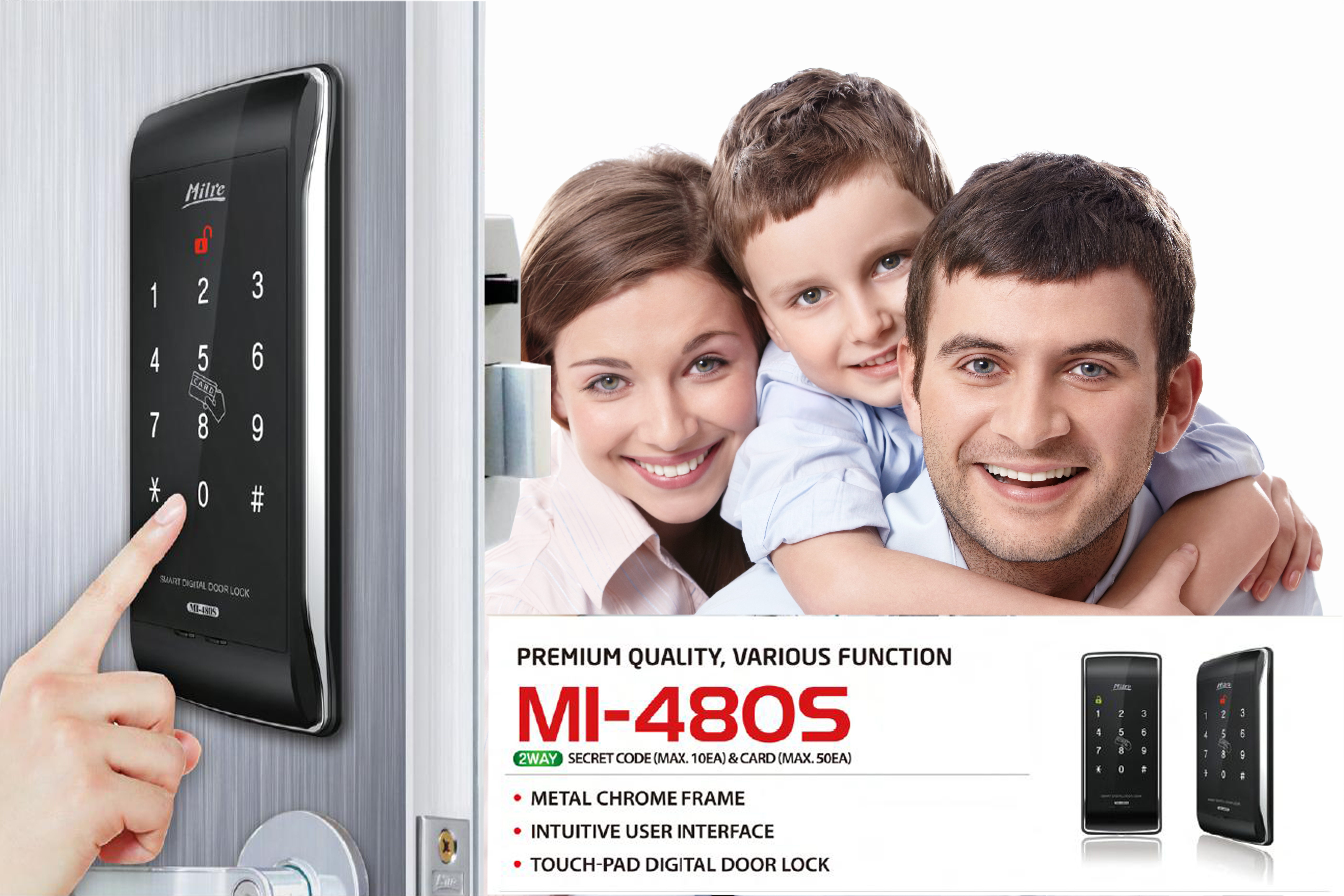Milre MI-480S оборудован высокочувствительным сенсорным дисплеем. Дисплей замка защищен высокопрочным ABS пластиком и способен выдержать как сильные удары, так и воздействия огня и воды.